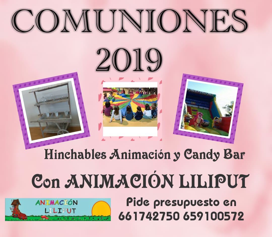 Celebra tu primera comunión con los hinchables, candy-bar y los servicios de animación que te ofrece Animación Liliput. Que este día tan importante en la vida de tus hijos sea el más feliz.